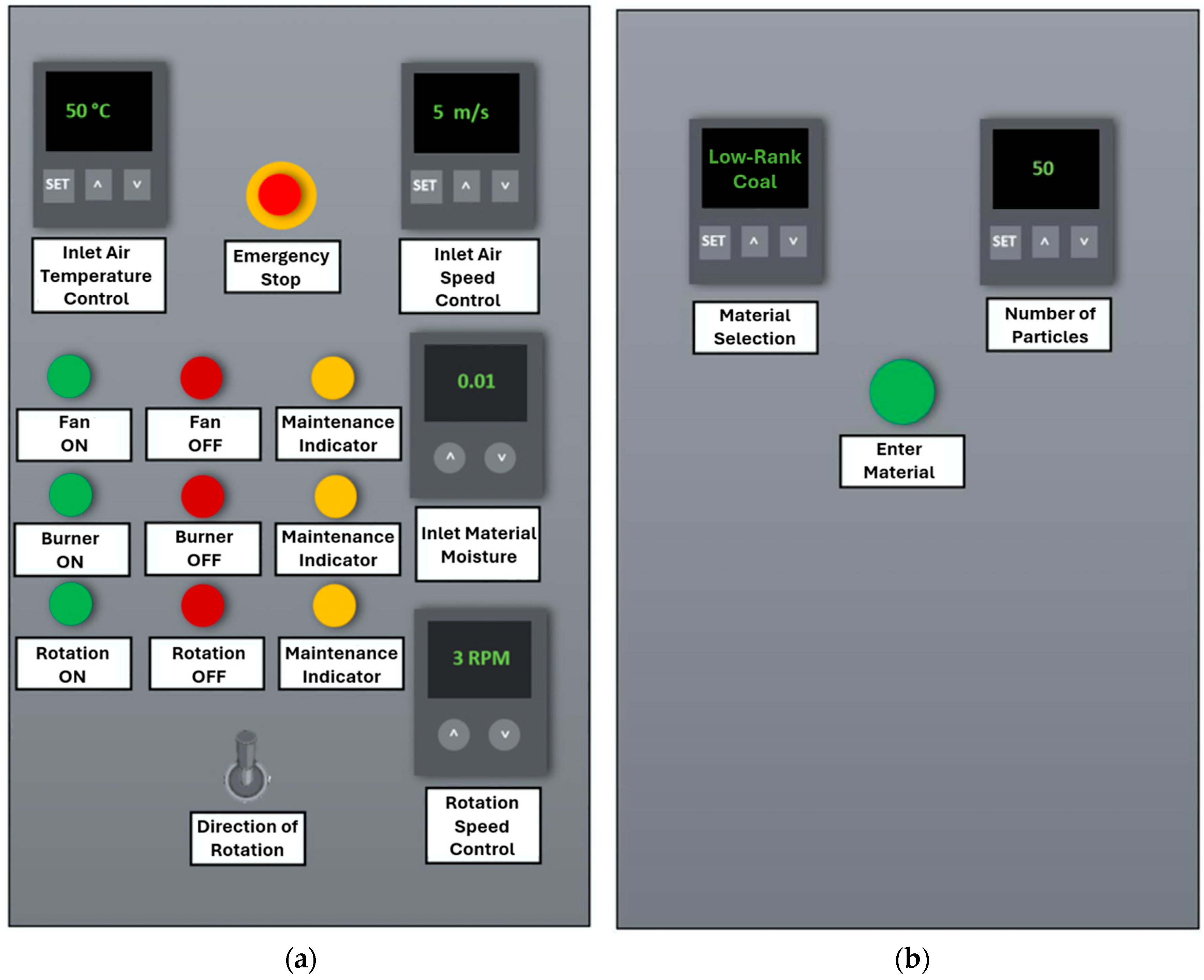 2.2. Behavioral Aspects of the Digital Rotary Dryer in the VR Environment