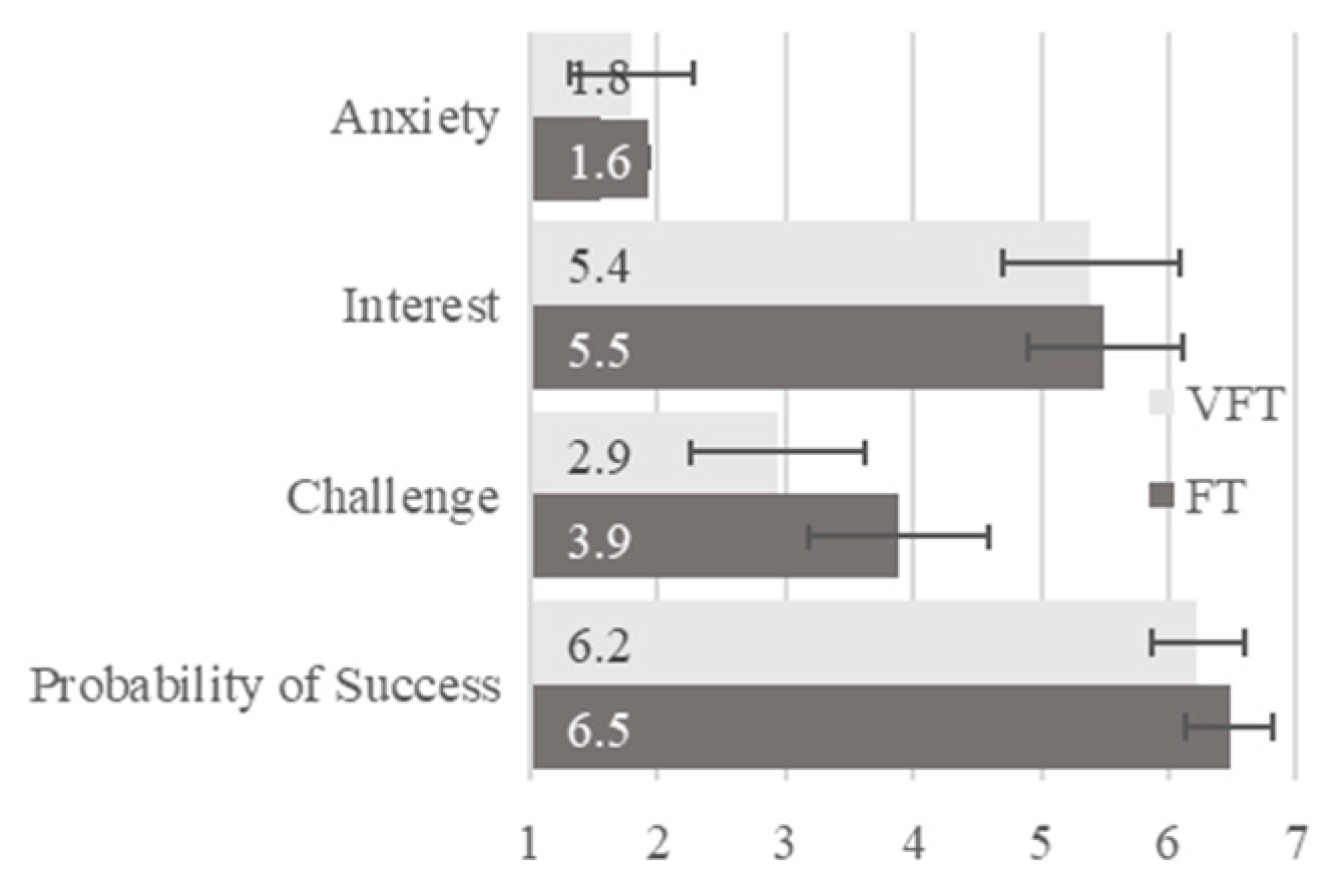 - The similarity of VFT and FT is reflected in their frequently comparable characterization across different constructs, such as motivation, emotion, and CL. The improved values regarding presence and social presence in the FT seem plausible.