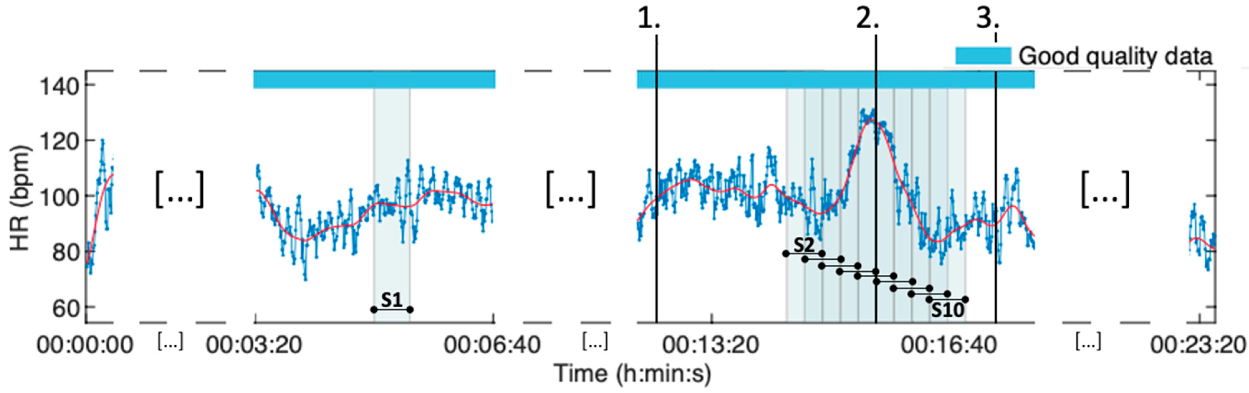 4.4. Heart Rate Variability (HRV) Analyses