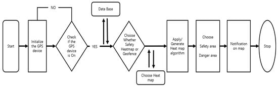 An example of a heatmap data request message and a typical workflow group system is shown in Table 1 and Figure 2. For the heatmap crime map application, the operation of the GPS system is required. Once the GPS system is running, the map will load safe and danger area data from the database. Finally, based on the user’s preference, the map will show safe or danger areas of the nearby location.
