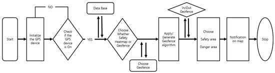 In this study, geofencing was set up using the ‘Google Geofencing API’. Additionally, geofencing was implemented in a way that if a user enters a safe geofence area based on their location, the safety index increases, while entering danger/risk geofence area decreases the safety index.