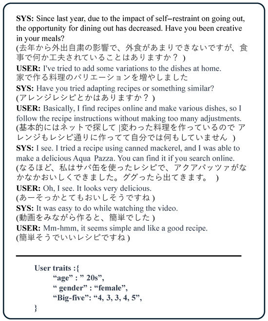An example dialogue session contained in our dataset(Contains the English translation along with the corresponding original data in Japanese).