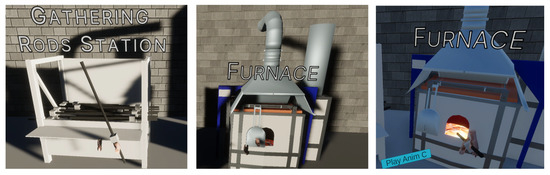 Several serious games have contributed to this work subject. Serious games consider learning objectives and learning outcomes as fundamental design considerations and thus are considered more appropriate for game-based learning [62]. The Woodwork Simulator [63] provides reasonable approximations of the effect of virtual saws, drills, glue, chisels, and sandpaper on virtual wood. In [64], simplified tool interaction is used to shapes metallic pieces. In [65], calculus is made more interesting, intuitive, and educational. In [66], glasswork actions are simulated in MR. Pottery simulations involve the manipulation of clay on a rotating wheel. In [67], a haptic simulation of pottery-making provides users with tactile feedback, enhancing the realism of the experience and enabling the replication of traditional techniques. Metalworking processes such as forging, casting, and machining involve significant physical transformations. In [68], deformable models that simulate the plastic deformation of materials, which are essential for creating realistic simulations of metalworking operations were developed.