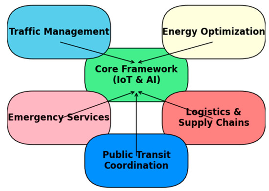 Figure 1 provides a conceptual overview of the proposed framework, illustrating the interaction among IoT data streams, AI-driven analytics, security layers, and optimization engines. A more detailed data flow from input to benefit realization is later illustrated in Figure 14.