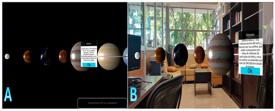 Augmented Reality Visualization (Figure 5B): In addition to virtual reality, environments created with BabloXR can also be visualized in augmented reality (AR). Using a mobile device with AR capabilities, such as a cell phone or tablet, users can overlay the AR environment over the real-world environment. By accessing the link on an AR device, the environment is integrated with the physical world through the device’s camera, allowing users to interact with virtual elements in their real world. The right panel in Figure 5 displays an environment viewed in AR mode, showcasing the ability to combine the virtual and real world.