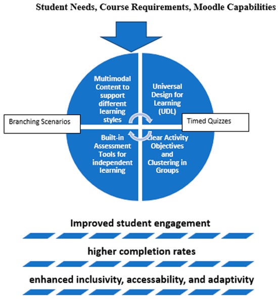 Thus, Moodle does not have automated tailored content; therefore, it is not inherently adaptive. The platform supports teacher-driven adaptivity, which is equally critical in real-time blended learning environments. Such capability aligns with UDL’s principles of providing multiple means of representation, action, and engagement. Thus, there is a need for further investigation and empirical evaluation.