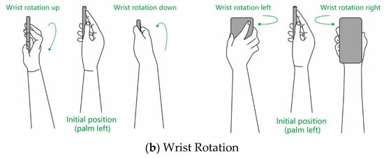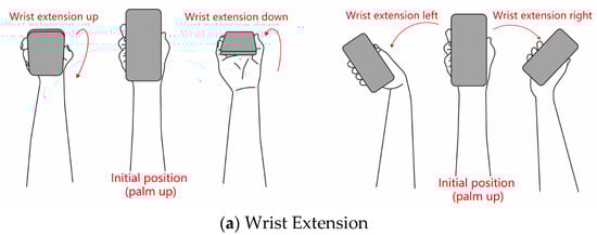 Indeed, many of the distal pointing tasks involve the combination of arm and wrist motions [22]. Recent studies have shown that wrist-based interaction modes play a more advantageous role in terms of both performance and comfort. Bohan et al. reported that a small scale of hand motor movement (such as wrist movement) yielded higher operational accuracy than a large scale of hand motor movement (such as upper arm movement) [23]. Chen et al. explored the effects of postural control methods on distal pointing performance, suggesting that among the three joint-based interactive methods (wrist-, elbow-, and shoulder-based interactive methods), the wrist-based method is a better interactive method for tasks where pointing speed is the highest priority [14]. Although wrist movements are influenced by the arm’s muscle and skeletal structure, with a reasonable range of motion control, wrist interactions can trade off less effort for better reaction time [24].