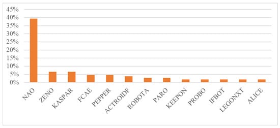 Research on the use of Pepper robots for treating ASD has shown promising results in various therapeutic settings and has been used in multiple studies to enhance social skills, emotional recognition, and engagement in children with ASD. It has been used in intervention protocols to address emotional deficits using additional devices, such as the Empatica E4 bracelet, to collect physiological data, which helps in understanding the emotional states of children during therapy sessions []. Experimental trials have utilized Pepper robots in therapeutic laboratories to promote functional acquisition in children diagnosed with high-functioning autism or Asperger’s syndrome []. Benedicto [] highlighted the importance of nonverbal communication in enhancing human–robot interactions for effective therapy. They can be programmed to improve joint attention, imitation, and social communication [].