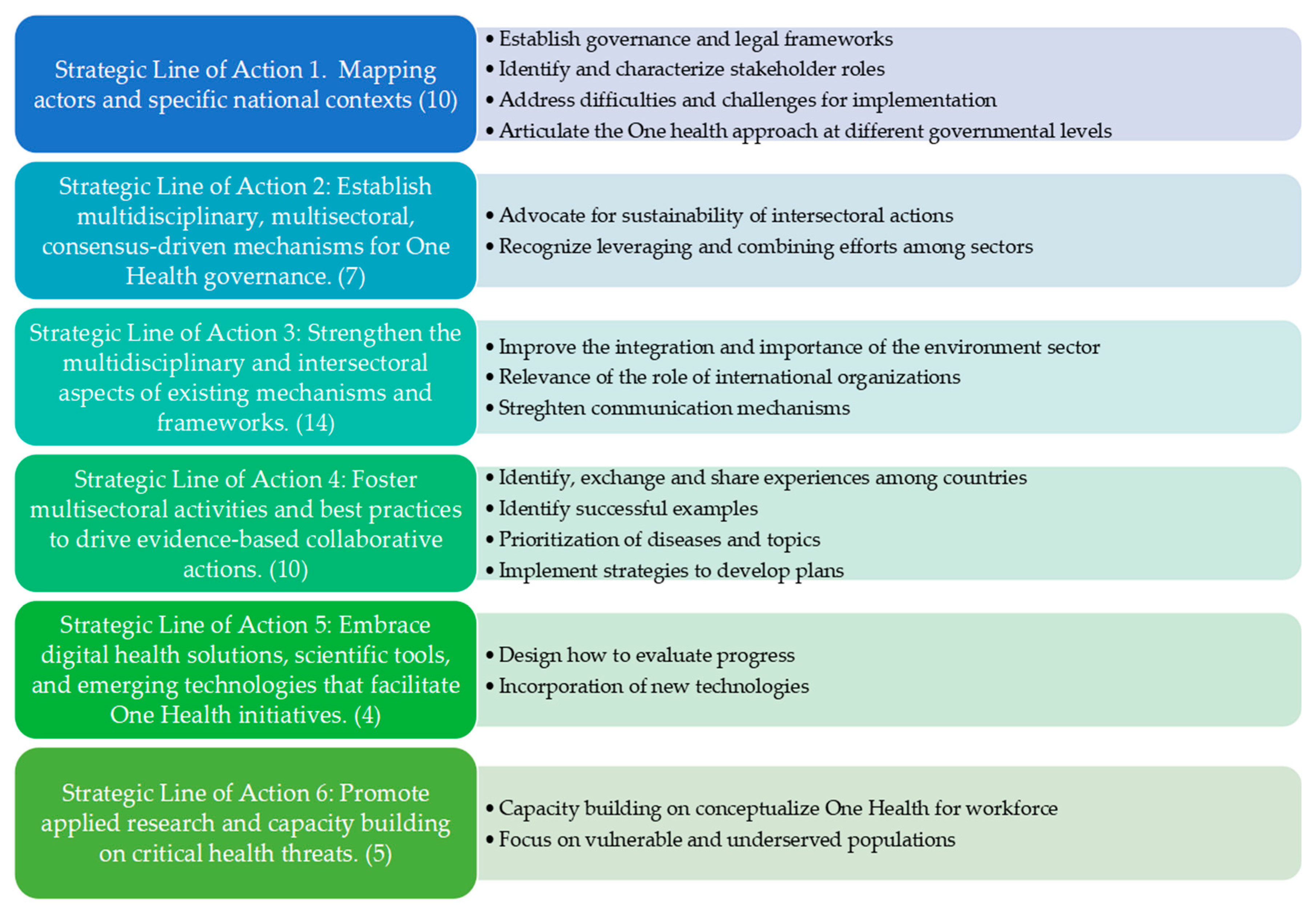 3.1. Intersectoral Coordination Examples and Themes Discussed According to Each Strategic Line of Action of the PAHO One Health Policy