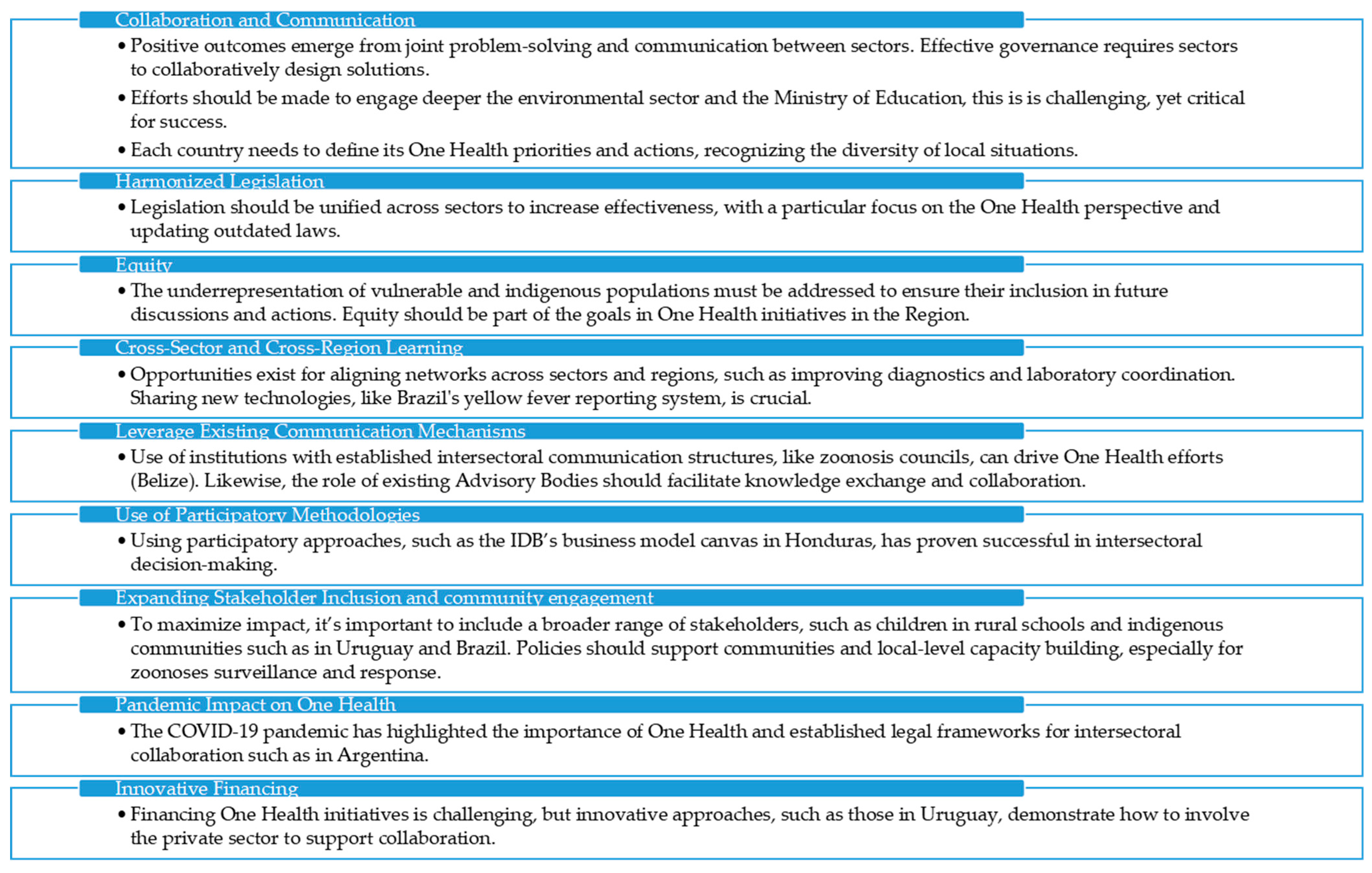 - Regional cooperation and alignment with international One Health frameworks (Belize)