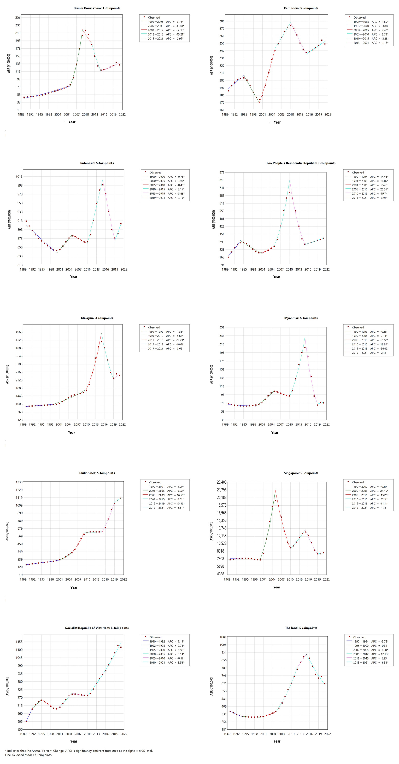 3.3. Temporal Trend of Dengue Fever ASR in ASEAN Countries