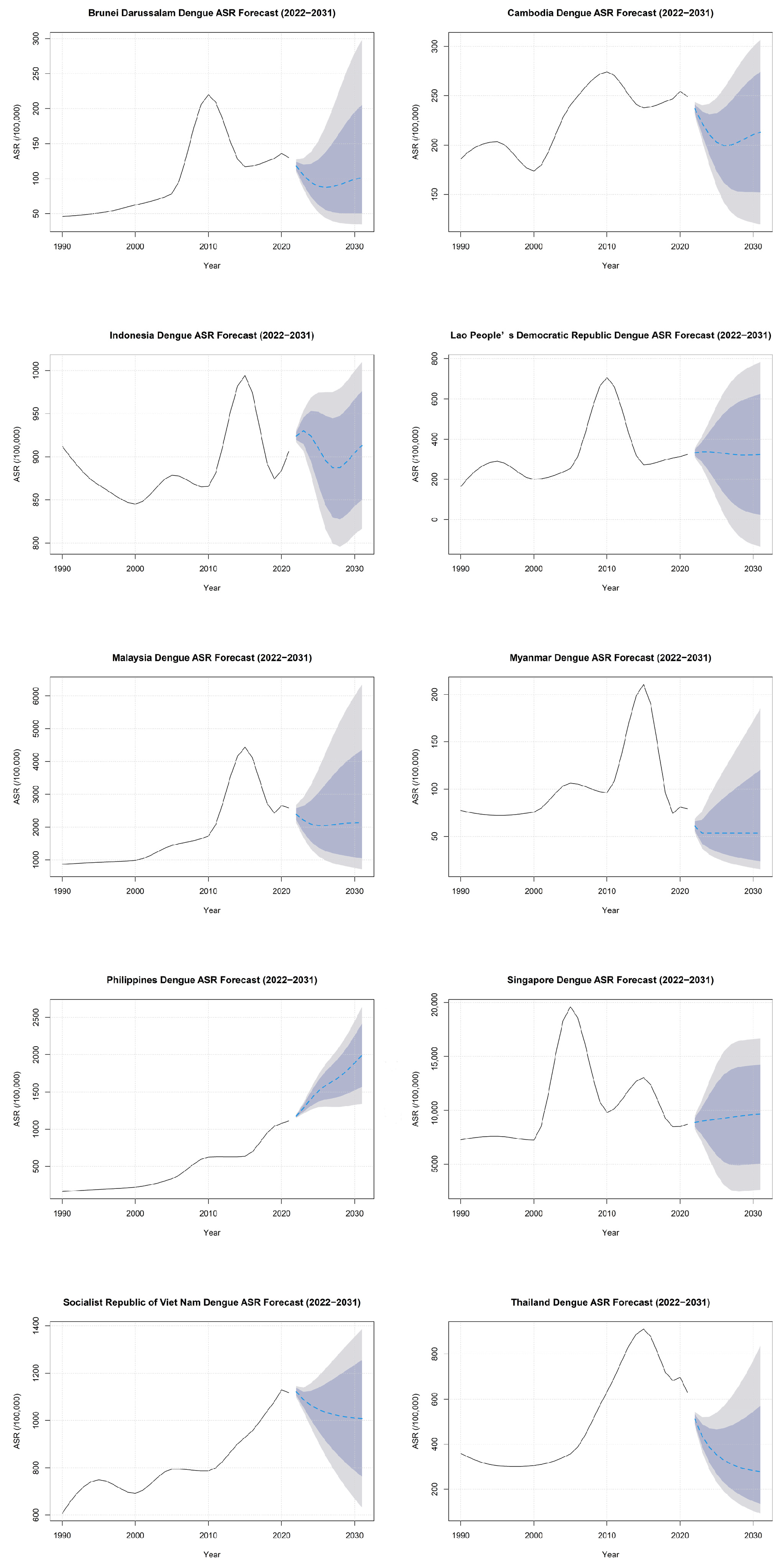 3.4. Prediction of Dengue Fever ASR in ASEAN Countries