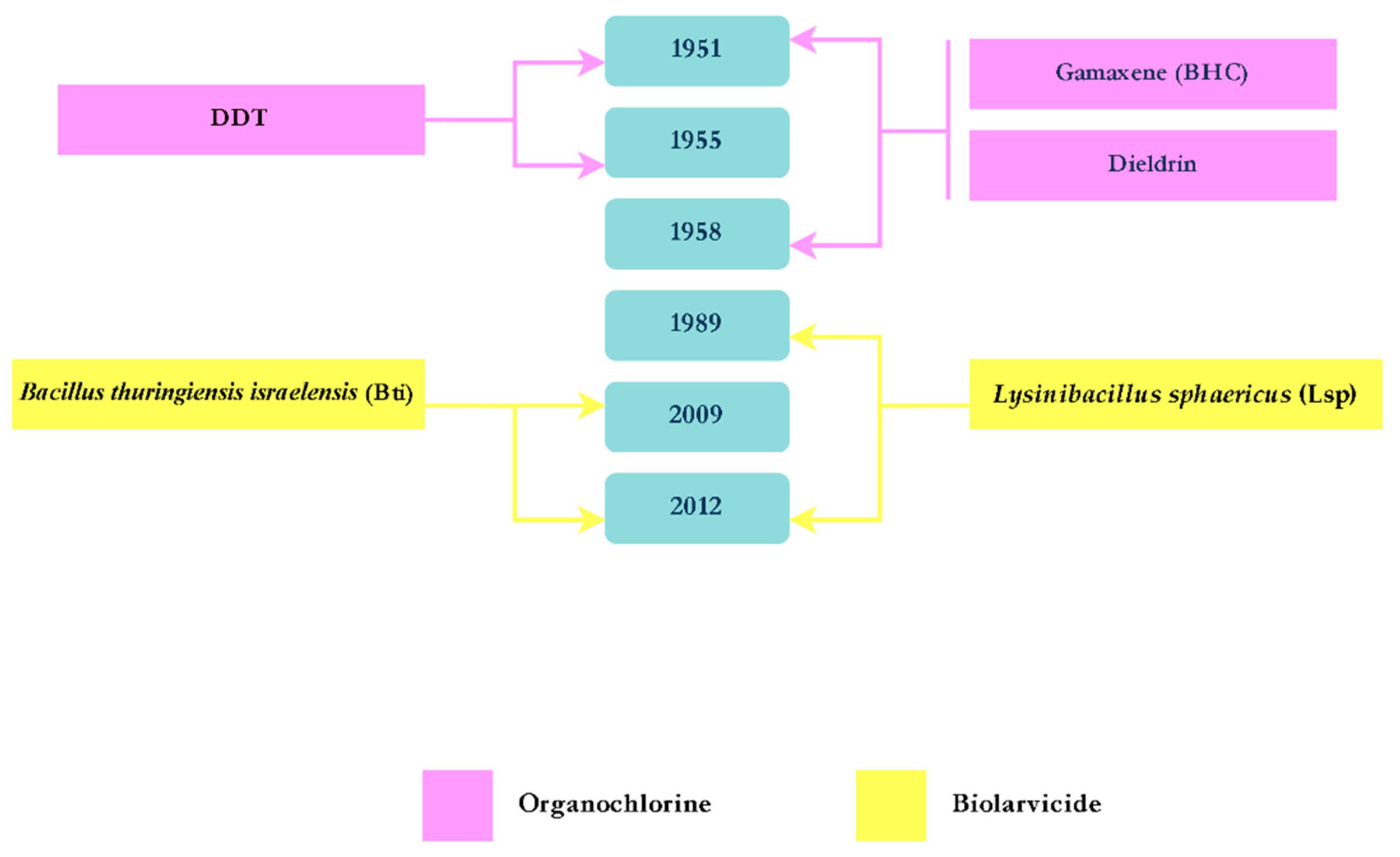 Figure 2. Timeline of the insecticides introduced for Aedes aegypti control.