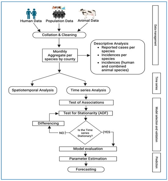 Summary of methodology and approach used to undertake the spatiotemporal analysis and forecast human brucellosis incidence for 2014–2022. (Created in BioRender. Manyu, R. (2025) https://BioRender.com/nbmw39m.).