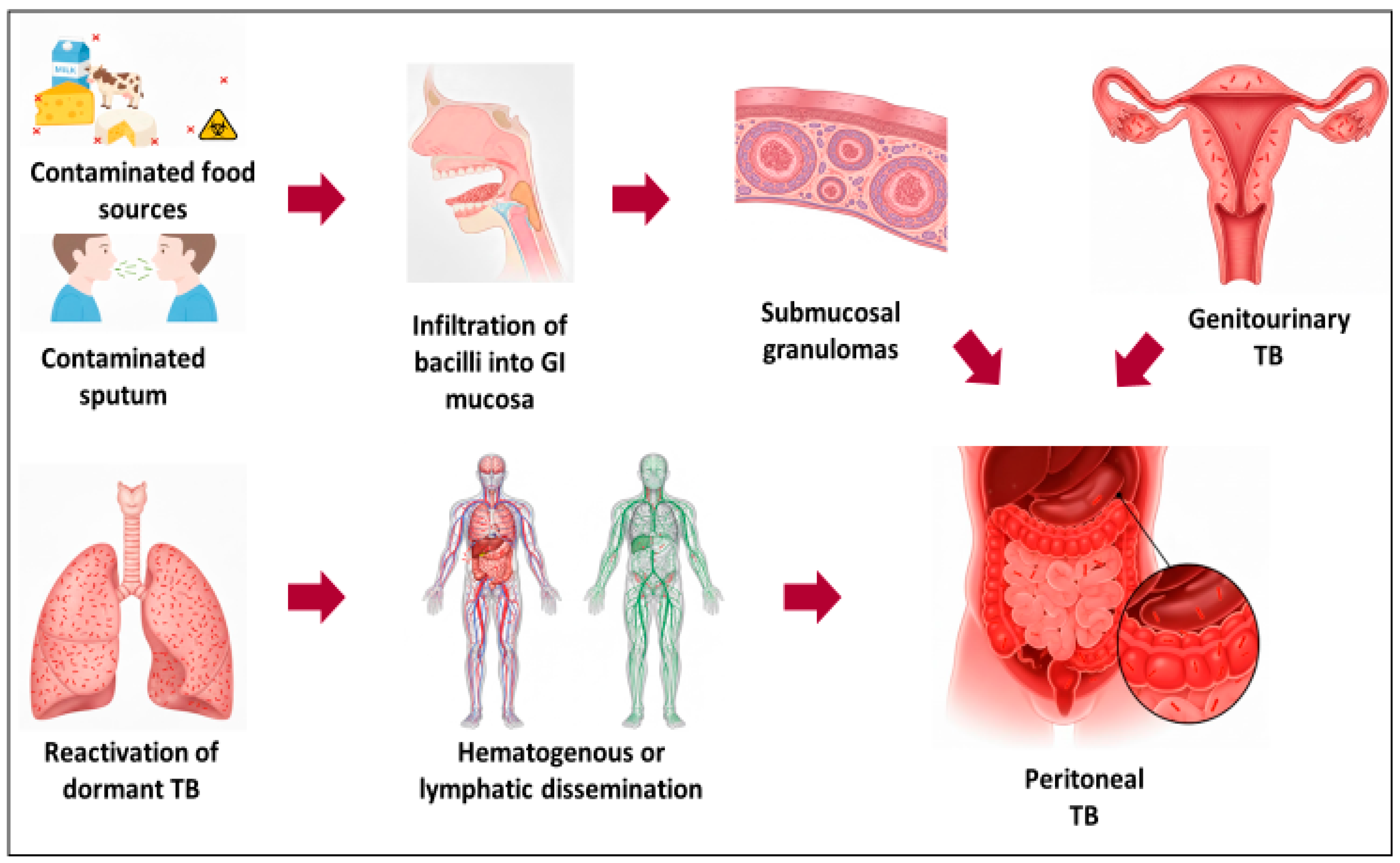 - Flores, R.M.; Dopp, M.; Bhatt, V.V.; Theodory, B.; Robb, P.M. A rare case of peritoneal tuberculosis mimicking peritoneal carcinomatosis: The ongoing challenge. BMC Infect. Dis. 2024, 24, 1140. [Google Scholar] [CrossRef] [PubMed]