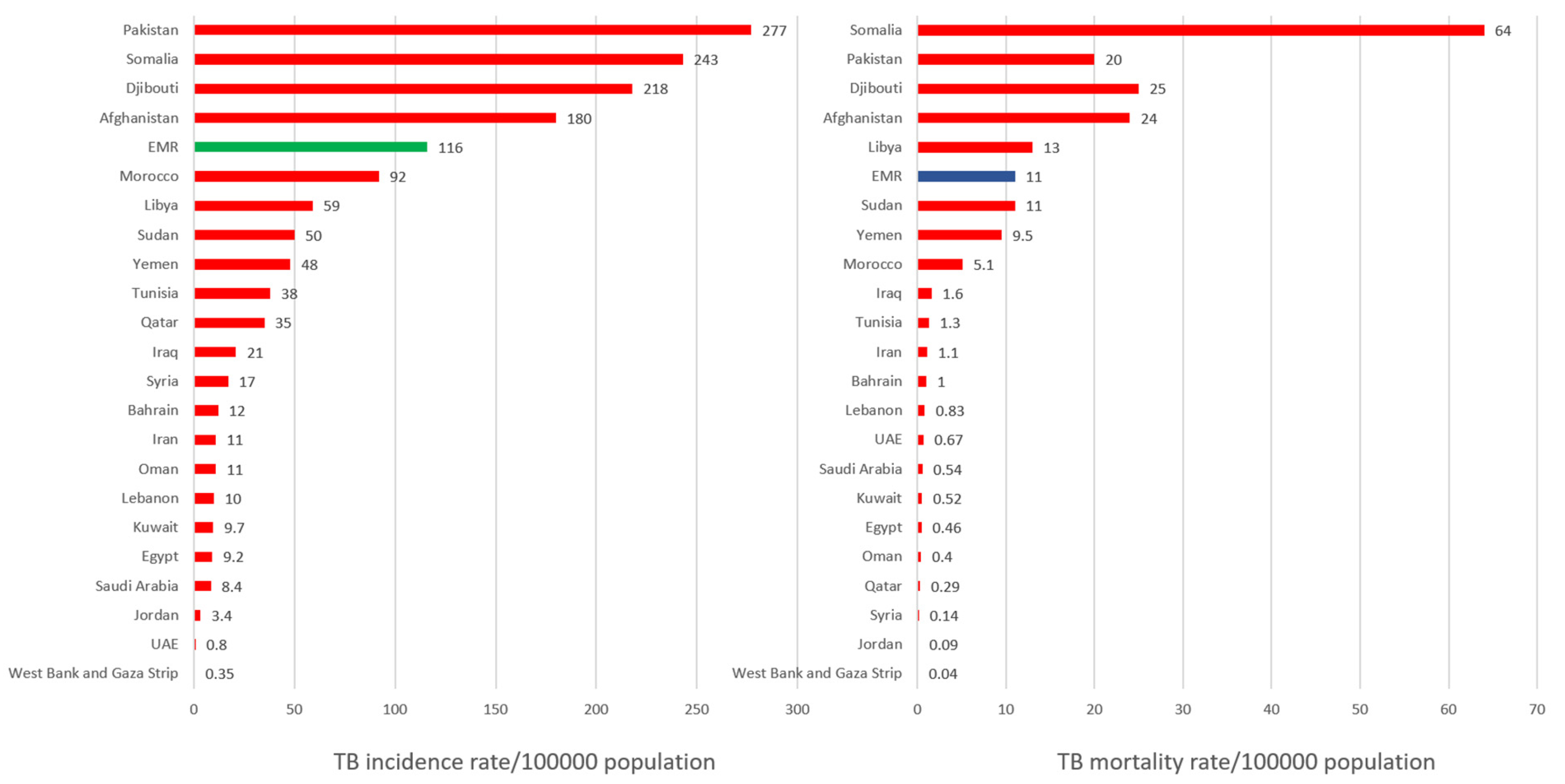 - World Health Organization. Tuberculosis Profile: WHO Eastern Mediterranean Region; World Health Organization: Geneva, Switzerland, 2023. [Google Scholar]