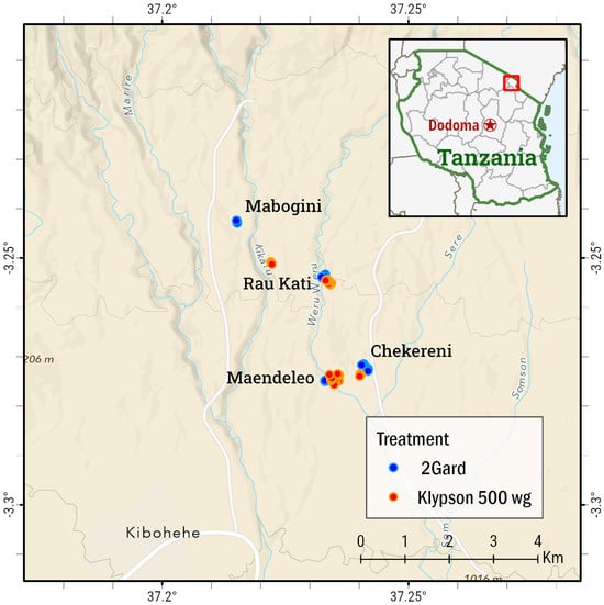 Chicago/Turabian StyleMohamed, Maua J., Deokary J. Matiya, Fred D. Chibwana, Winfrida Kidima, Aneth M. Mahande, and Eliningaya J. Kweka. 2025. "The Comparative Performance of Klypson 500WG and 2GARD-WP Sprayed on Different Wall Surfaces Against Anopheles gambiae s.l. in Lower Moshi, Northern Tanzania" Tropical Medicine and Infectious Disease 10, no. 3: 63. https://doi.org/10.3390/tropicalmed10030063