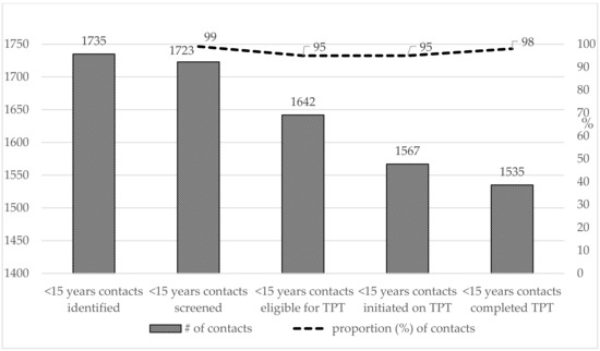 Tuberculosis (TB) is a curable and preventable infectious disease; however, it remains a major global public health problem and is one of the leading causes of death worldwide [1]. People with prolonged exposure to infectious forms of TB can contract a TB infection, which often remains asymptomatic and non-infectious in the majority of those exposed [2]. About one-third of the world’s population is estimated to be infected with mycobacterium TB. If left untreated, 5–10% of people infected with TB develop active TB in their lifetime. Several factors, including immune-suppressive conditions, fuel the risk of progression from infection to disease. Household or close contacts of people with bacteriologically confirmed pulmonary TB (BCPTB) remain at greater risk of developing active TB without treatment of the TB infection. They may develop active diseases at any time during their lives [1,3,4]. Early provision of TB preventive treatment (TPT) for child and adolescent contacts is essential to reduce the risk of disease progression following recent exposure to infectious PTB [5].