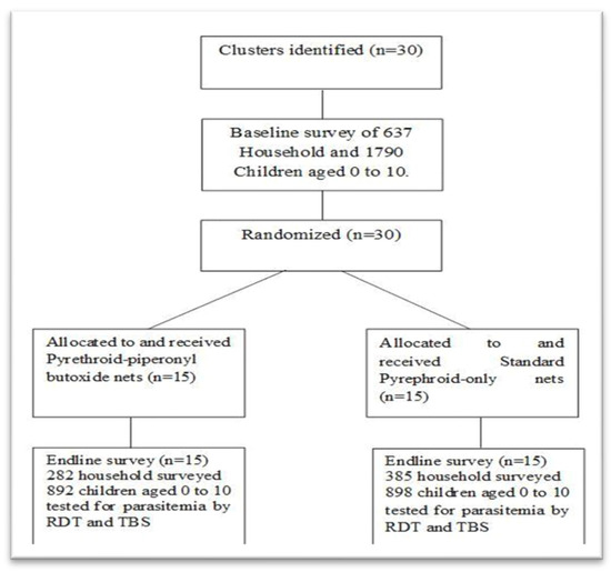 - WHO. Guidelines for Monitoring the Durability of Long-Lasting Insecticidal Mosquito Nets Under Operational Conditions. Geneva: World Health Organization; 2011. WHO/HTM/NTD/WHOPES/2011.5. Available online: http://whqlibdoc.who.int/publications/2011/9789241501705_eng.pdf (accessed on 25 October 2019).