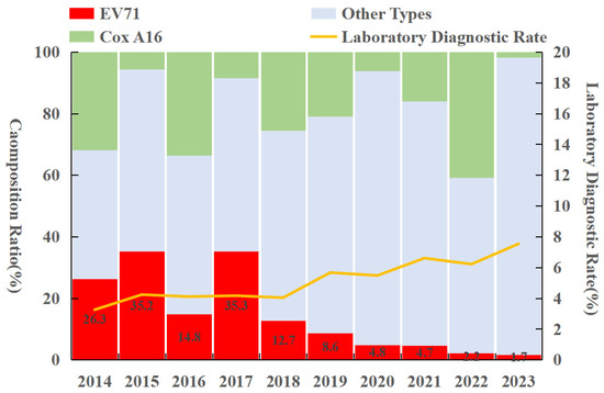 Pathogen profile of HFMD in Fujian Province from 2014 to 2023.