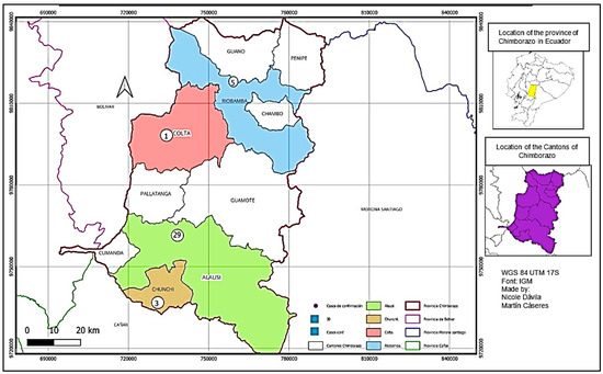 The study focused on specific areas of Chimborazo Province, which covers approximately 6499.72 km2 and includes high-altitude zones such as the Chimborazo Volcano (6310 m.a.s.l.). The province experiences distinct wet and dry seasons, with the wettest months occurring from January to April. Temperatures typically range from 4 °C to 15 °C year-round, although the valleys of the province may differ in this regard [17,19,20].