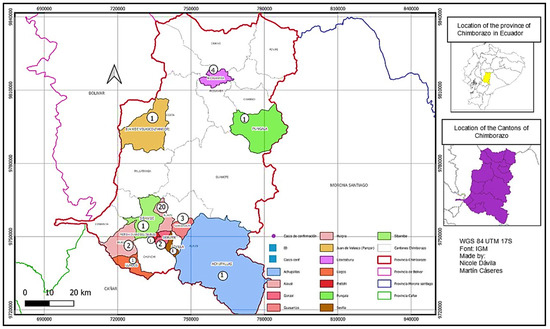 3.3. Spatial Distribution of Leishmaniasis in the Province of Chimborazo