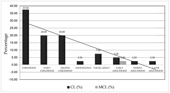 The distribution of CL according to life cycle stages showed that no age stage is free from contracting the pathology, and a predominance is evident in the child population until second childhood; it is likely that this is due to the lack of immunity in this age group to leishmaniasis, especially at the childhood stage. It is also important to mention that Lutzomyia has been described as an arthropod with a low flight range [16]. Therefore, this could explain the higher prevalence group because children at that age are closer to the ground, in the first stages of self-movement.