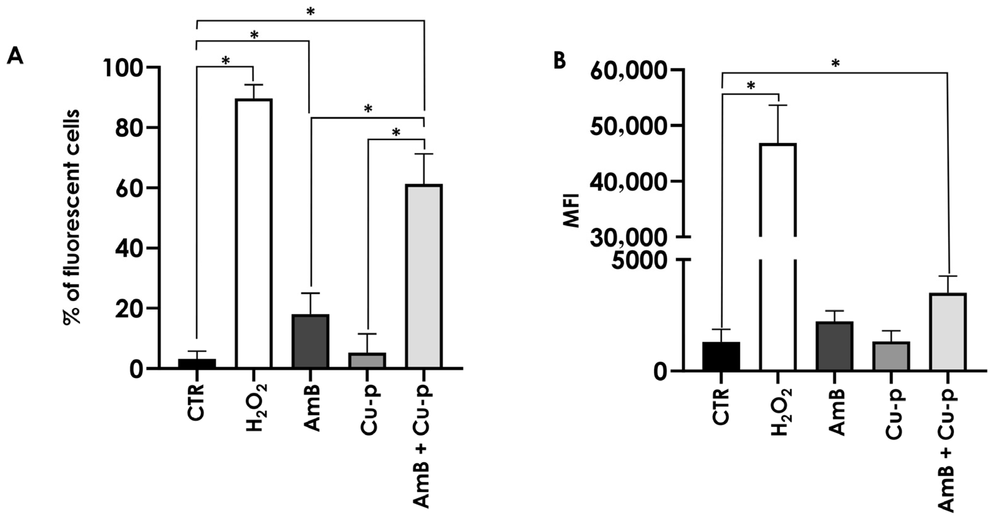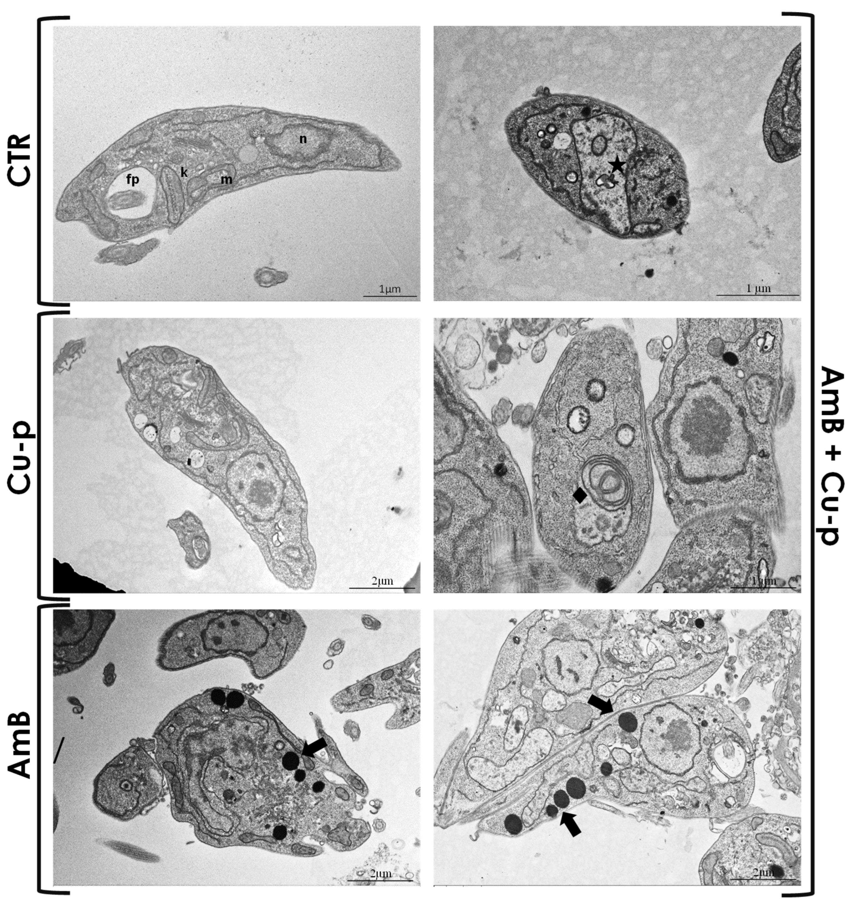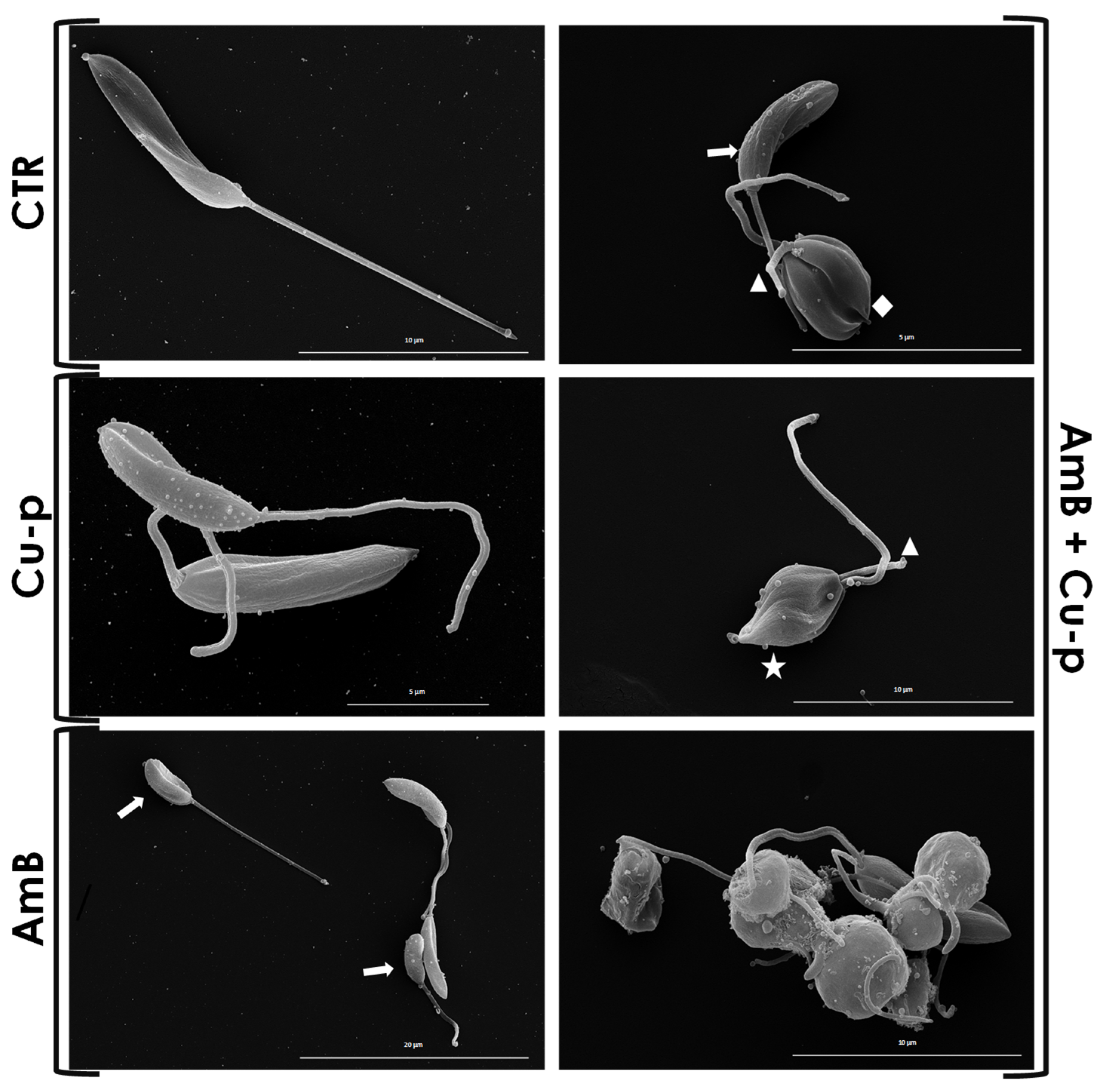 3.1. Effect of Cu2+-Phendione and AmB on the Proliferation Rate of L. amazonensis Promastigotes