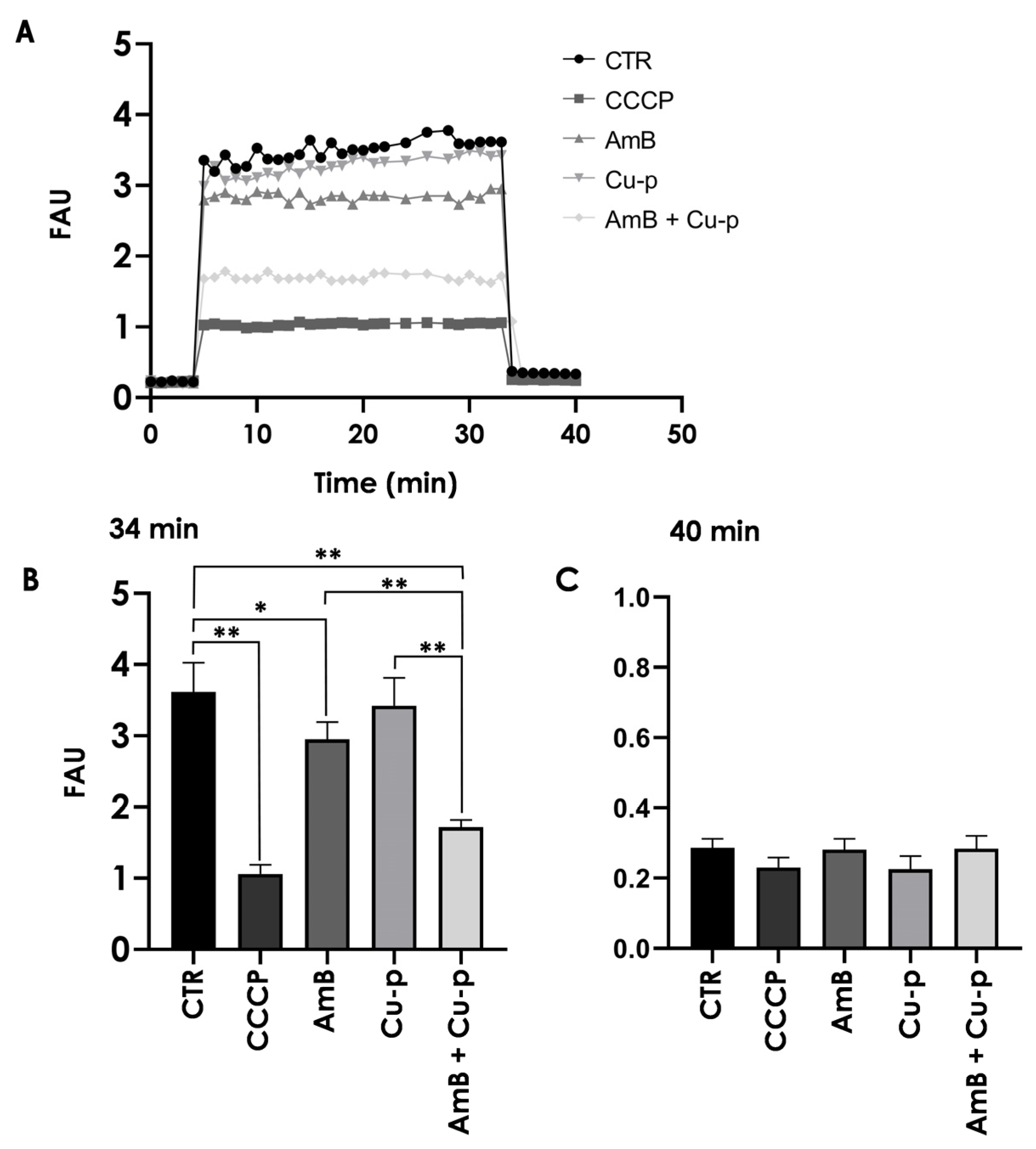 2.13. Combination Assay of AmB and Cu2+-Phendione