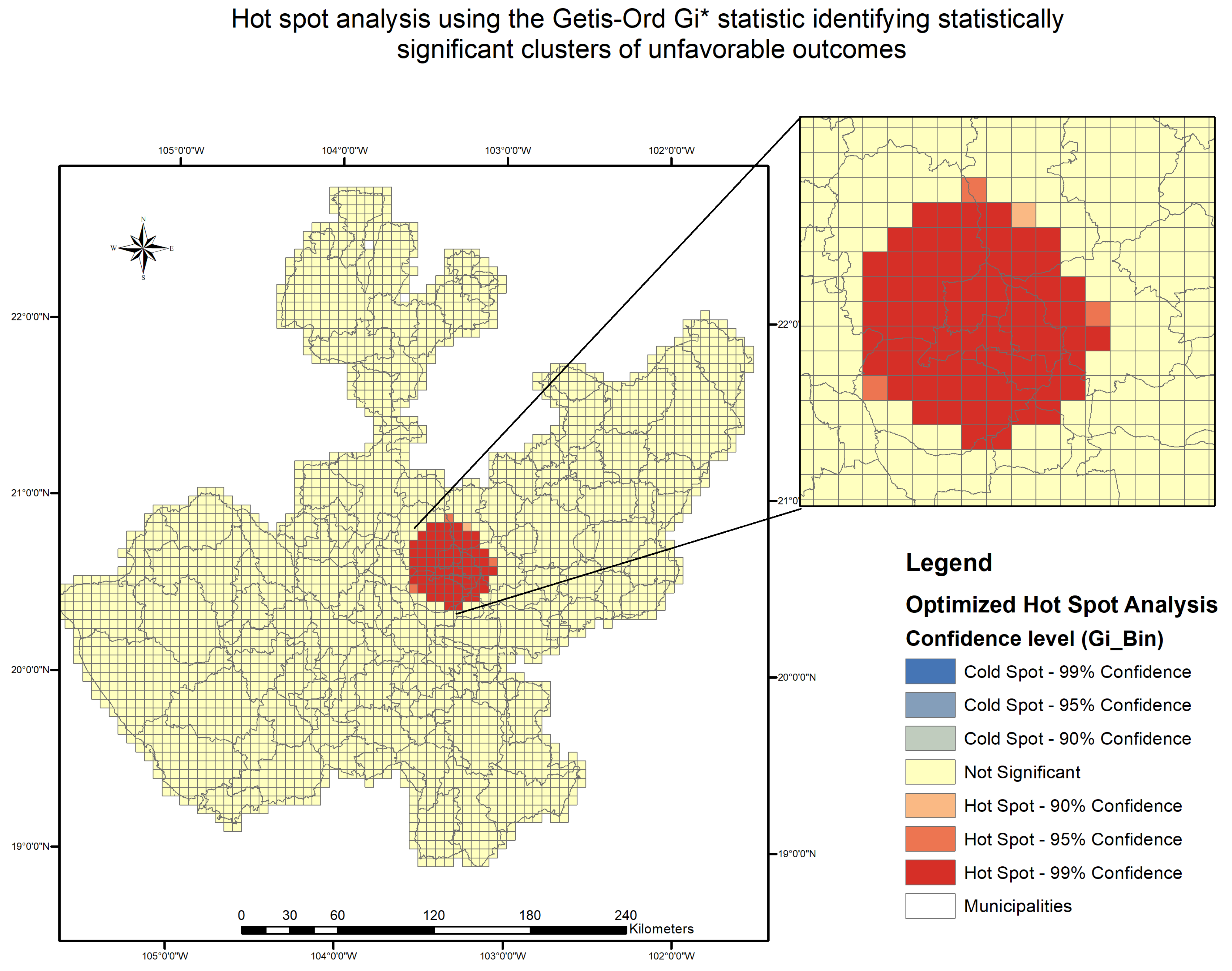 14]. In our study, the observed clusters of unfavorable outcomes were concentrated in peripheral zones of the city, suggesting possible spatial segregation and the compounded impact of geographic marginalization.
