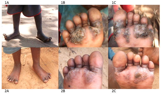 The group have been using a combination of treatment and prevention approaches. For treatment they use a locally-produced herbal medicine based on neem and coconut oils to treat cases, as it was available, affordable, easy to use, apparently effective and safe. CHVs regularly visit homes, local public and private nursery and primary schools, identify infected individuals and treat them. A few drops of the oil are placed directly on the embedded fleas and repeated 2–3 times in the course of one week. With time the dead flea carcass is shed by natural skin replacement processes and the chronic pathology eventually heals (Figure 3, panel 2A–C).