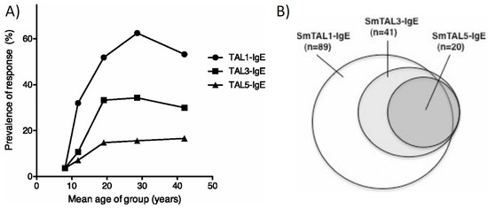 - Fitzsimmons, C.M.; Jones, F.M.; Stearn, A.; Chalmers, I.W.; Hoffmann, K.F.; Wawrzyniak, J.; Wilson, S.; Kabatereine, N.B.; Dunne, D.W.; Oliveira, S.C. The Schistosoma mansoni tegumental-allergen-like (TAL) protein family: Influence of developmental expression on human IgE responses. PLoS Negl. Trop. Dis. 2012, 6, e1593. [Google Scholar] [CrossRef] [PubMed]