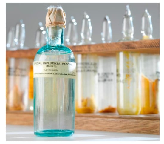 - Rosenow, E.C. Prophylactic inoculation against respiratory infections during the present pandemic of influenza. JAMA 1919, 72, 31–34. [Google Scholar] [CrossRef]