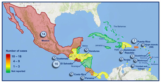 Cases have been reported in Central America from Guatemala to Panama, except in Nicaragua and Belize (Figure 1).