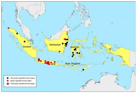 Previously reported indigenous human and animal melioidosis cases in Indonesia (n = 101 cases).