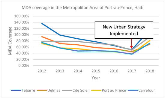 MDA coverage in the metropolitan area of Port-au-Prince, Haiti (2012–2018).