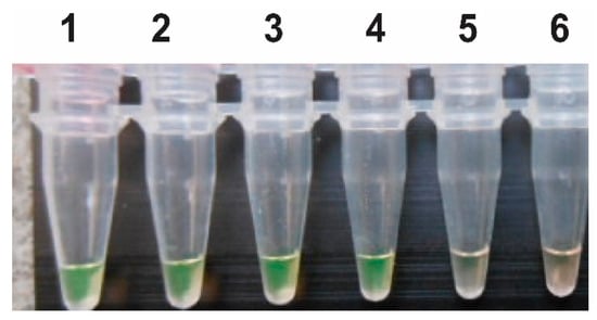 - Tomita, N.; Mori, Y.; Kanda, H.; Notomi, T. Loop-mediated isothermal amplification (LAMP) of gene sequences and simple visual detection of products. Nat. Protoc. 2008, 3, 877–882. [Google Scholar] [CrossRef]