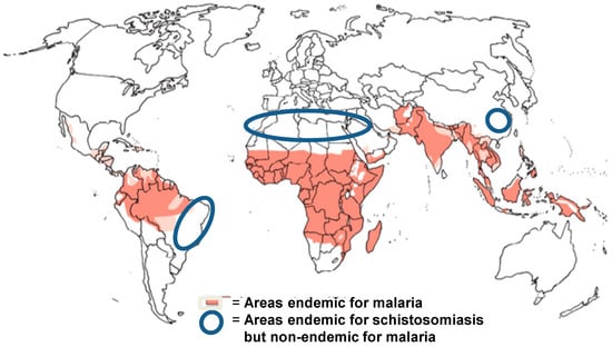 - Gryseels, B. Schistosomiasis. Infect. Dis. Clin. N. Am. 2012, 26, 383–397. [Google Scholar] [CrossRef]