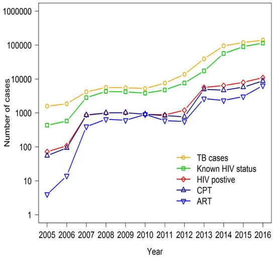 - World Health Organization. WHO Policy on Collaborative TB/HIV Activities: Guidelines for National Programmes and Other Stakeholders; WHO: Geneva, Switzerland, 2012. [Google Scholar]