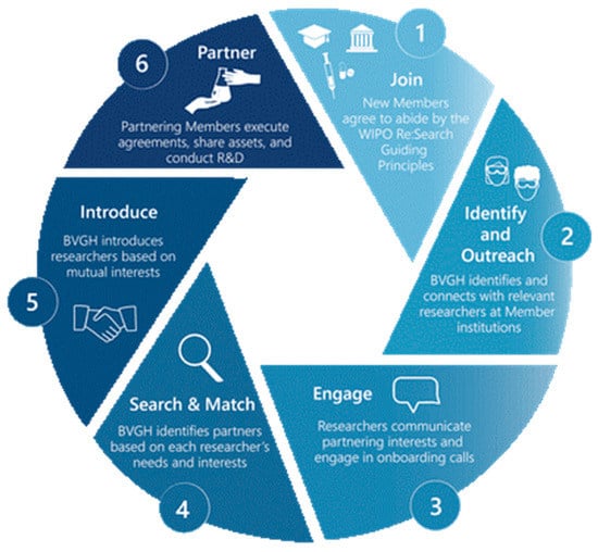 - Accelerating R&D for Neglected Diseases through Global Collaborations: WIPO Re:Search Partnership Stories 2013–2015; BIO Ventures for Global Health: Seattle, WA, USA, 2016; Available online: https://bvgh.org/wp-content/uploads/2017/07/2013-2015-WIPO-ReSearch-Storybook.pdf (accessed on 19 March 2019).