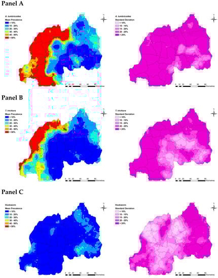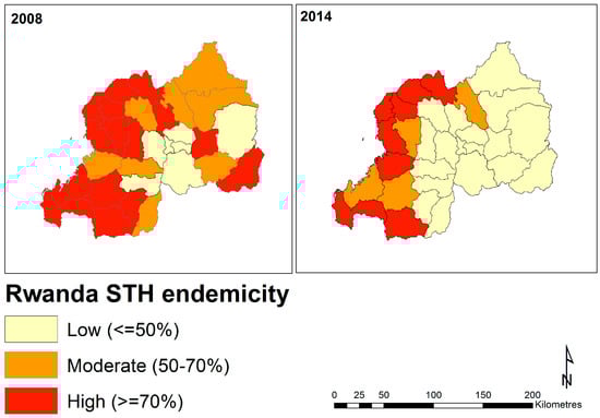 Ruberanziza, E.; Owada, K.; Clark, N.J.; Umulisa, I.; Ortu, G.; Lancaster, W.; Munyaneza, T.; Mbituyumuremyi, A.; Bayisenge, U.; Fenwick, A.; et al. Mapping Soil-Transmitted Helminth Parasite Infection in Rwanda: Estimating Endemicity and Identifying At-Risk Populations. Trop. Med. Infect. Dis. 2019, 4, 93. https://doi.org/10.3390/tropicalmed4020093