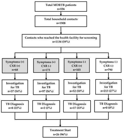 - Javaid, A.; Khan, M.A.; Khan, M.A.; Mehreen, S.; Basit, A.; Khan, R.A.; Ihtesham, M.; Ullah, I.; Khan, A.; Ullah, U. Screening outcomes of household contacts of multidrug-resistant tuberculosis patients in Peshawar, Pakistan. Asian Pac. J. Trop. Med. 2016, 9, 269–273. [Google Scholar] [CrossRef] [PubMed]
