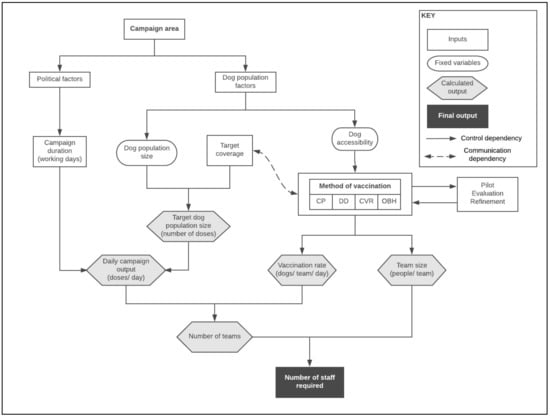 There is an inverse relationship between campaign duration and workforce, as well as between the workforce availability and expertise. These factors must be offset to find a feasible solution to dog vaccination at scale. All of these factors are inter-related and must be considered when planning an effective mass dog vaccination campaign (Figure 1).