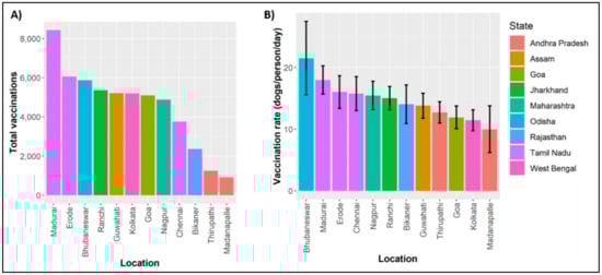 Reliable estimates for roaming dog population size in Indian cities are limited. There is wide variation in reported estimations for human-to-dog ratios in urban settings of India, ranging from  23:1 to 83:1 (Table 1), with a mean of 50:1 (Table 1) [,,,,,,,]. Estimations from urban regions of neighbouring countries also vary greatly, with an estimated human-to-dog ratio of 828:1 in Dhaka, Bangladesh [], and 16:1 in urban areas of Bhutan []. More data is needed to accurately estimate the human-to-dog ratio for different settings, accounting for factors including pet ownership practices, religion, culture, human population density and geography. Although having an accurate estimate of population size can be helpful in planning pilot activities, it should not prohibit or delay their implementation and dog population estimates should not be used as the basis to estimate vaccination coverage which requires direct evaluation through post-vaccination surveys [,]. The value of well-planned and coordinated pilot campaigns that engage local stakeholders cannot be underestimated in their potential to catalyse the further expansion of activities. Such pilot initiatives, when coupled with post-vaccination surveys, not only provide an estimated dog population size, but also generate experience in delivering canine vaccination within the community, understanding of dog accessibility and give operational insights into the cost and efficacy of trialled methods [,]. These foundations enable adaptation of methods, systems, tools and training to meet local needs, as well as confidence to both campaign planners and funders in reaching for larger scale initiatives.