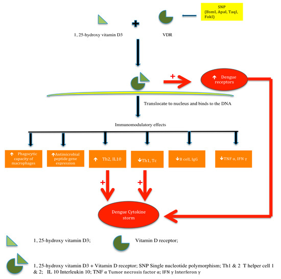 - Algarasu, K.; Honap, T.; Mulay, A.P.; Bachal, R.V.; Shah, P.S.; Dayaraj, C. Association of vitamin D receptor gene polymorphisms with clinical outcomes of dengue virus infection. Hum. Immunol. 2012, 73, 1194–1199. [Google Scholar] [CrossRef]