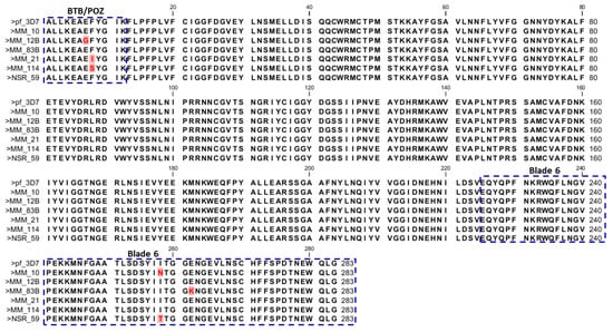 | Domain/ Propeller | Wild Type Codon | Polymorphic Site | Position (nt) | Observed Mutation | Sequence (s) with Mutation | Substitution Type | Day of Collection |