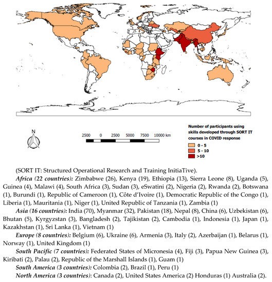 In the light of the COVID-19 pandemic, the link between this training programme and its role in strengthening health system resilience to respond to pandemics merits examination. We therefore assessed (1) whether SORT IT alumni are contributing to the COVID-19 pandemic response and if so, (2) map where and how they are applying their SORT IT skills.