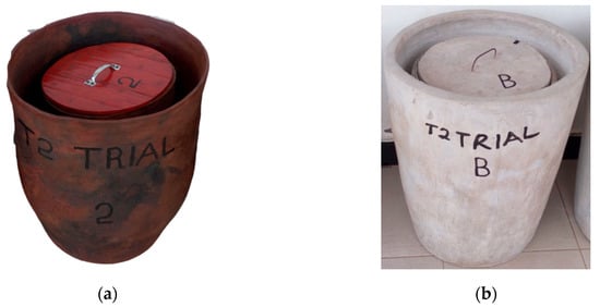 Pot-in-Pot systems: The system that delegates ranked the highest was a ‘pot-in-pot’ system (consisting of an inner pot nested within a larger outer pot) that exploited the evaporation of water as a cooling mechanism. The pot-in-pot system included a middle compartment filled with absorbent materials (multilayer) providing an effective barrier against heat exchange between the external surroundings and the cooling compartment. The design was named a ‘Zeepot’ after a traditional food storage pot commonly used in Africa to keep vegetables fresh. Two different Zeepot designs were suggested for development, (i) Zeepot Clay and (ii) Zeepot Cementsand. The two Zeepot prototypes were similar in design, however the Zeepot Clay was made from clay soil whereas the Zeepot Cementsand was made from cement and sand (Figure 2). Briefly, to construct the Zeepot Clay, the potter started by mining clay soil, which was then mixed with water to form clay. The potter punched the mass of clay to create a hole in the center, with the final shape formed by spreading apart the clay. The lid for the device was prepared using wooden materials. The pot was left for 2 days to dry in direct sunlight before being fired for 3–4 h. To manufacture the Zeepot Cementsand, cement and sand were mixed in the ratio 1:3, then water added to form mortar. A scoop was used to place the mortar outside of a conical shaped cylinder mold to create the shape and structure of the Zeepot Cementsand. Cylinder molds of different sizes were used for the inner and outer pots. The pots were filled with water and kept at room temperature for 3–4 days to complete the curing process.