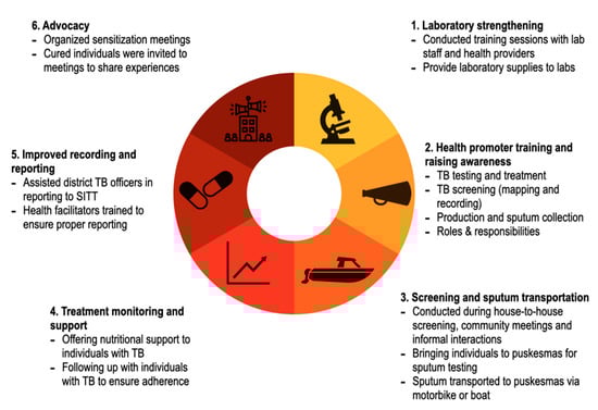 - Indonesia National TB Program. Current Status of Integrated Community Based TB Service Delivery and the Global Fund Work Plan to Find Missing TB Cases. 2018. Available online: https://www.who.int/tb/features_archive/indonesia_11apr18.pdf?ua=1 (accessed on 25 September 2020).