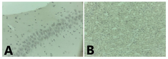 Staining controls: Mouse brain (A) without infection (400×). (B): Bat´s kidney PCR negative to Dengue (400×).